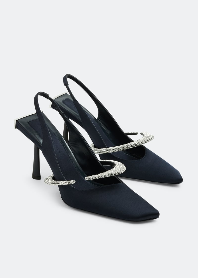 أضيفي مزيد من الأناقة إلى مجموعة أحذيتكِ مع حذاء إلسا عالي الكعب من بينيديتا بروزيتشيز. يتميز بتصميم مغطى بالساتان مع مقدمة مدببة بنمط مائل، حزام خلفي، تفصيل سوار أمامي مرصع بالكريستال وقاعدة كعب مربعة الشكل مزيّنة بحِلية من الألمينيوم تحمل شعار العلامة لمزيد من الفخامة.