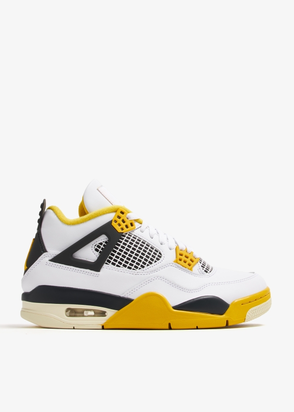 ظهر سنيكرز إير جوردان 4 من نايك لأول مرة في عام 1989 ويُعتبر النسخة الأخف وزناً من إصدار إير جوردان السابق المُصمم من قبل تينكر هاتفيلد. يتميز هذا الحذاء بتصميم بألوان "فيفيد سالفور" مع تفاصيل باللون الميتاليك، جزء علوي من الجلد والشمواه، شعار جامبمان الشهير على الكعب ونعل مطاطي بتقنية "إير".