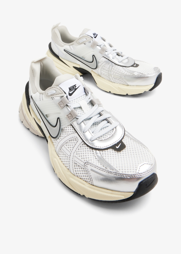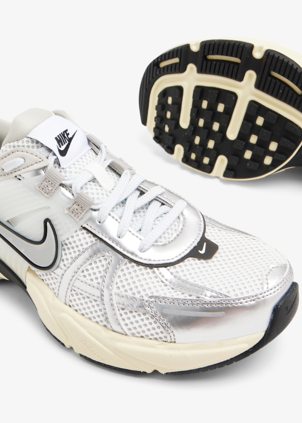 أكملي إطلالتكِ بلمسة مستوحاة من الألفية الثانية مع سنيكرز رانتيك من نايك. يتميز بجزء علوي من النسيج الشبكي باللون الأبيض مع طبقات من الجلد باللون الفضي المعدني، تفاصيل قفصية شبه شفافة، شعار السووش الشهير بنمط ثلاثي الأبعاد ونعل خارجي سميك.